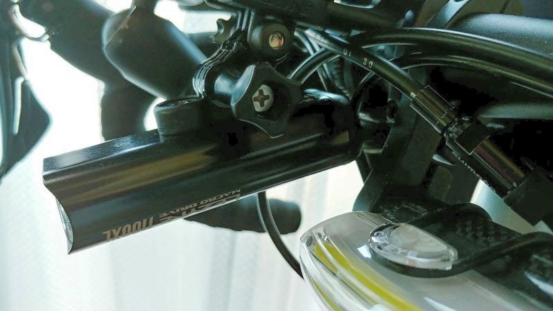 このステーを使えば、ライトを前に出せるのでステムにぶつからない。