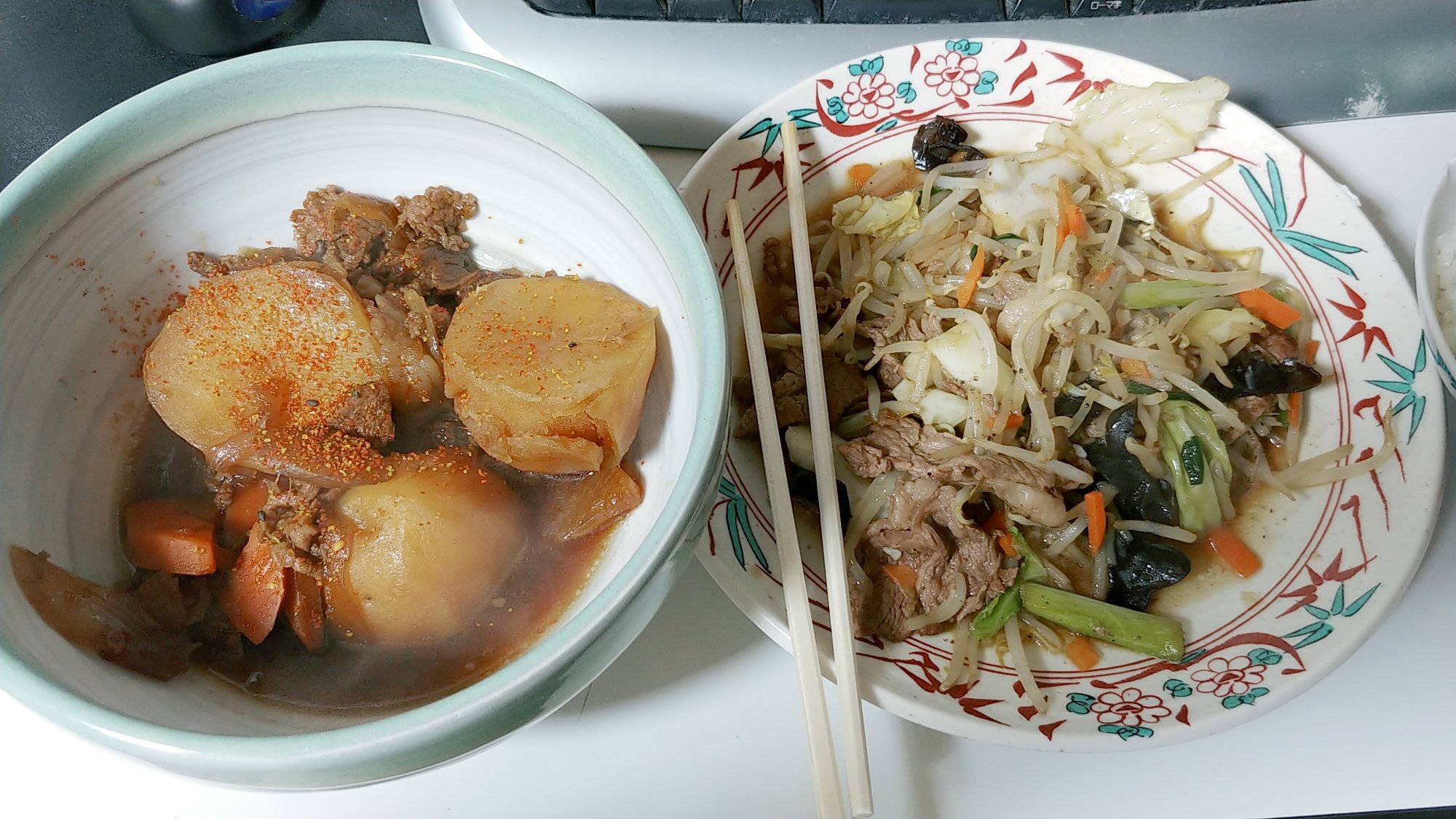 肉じゃがと野菜炒め。