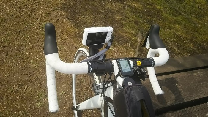 カメラもバーテープもタイヤも白。 WX350の充電は、カメラに直接コードを繋げるものなので、アマゾンで充電器を購入しました。