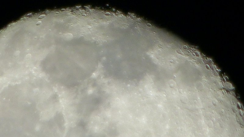 夜になって、やることがなくて何かないかと考えていたら 月が綺麗に見えるので撮ってみようと。 撮影機種は、パナソニックのFZ200 シャッターリモコンを取り付けて。 2.2×のテレコンを取り付けて最大で52.8倍に。 何も調整していないマニュアルで。 AIでオート撮影。 クレーターまでよく見えます。 ベランダで。