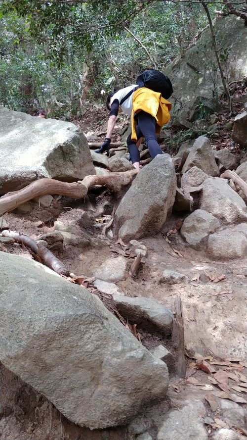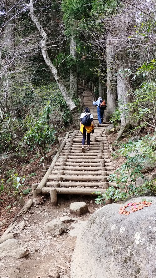 頂上手前のこの辺りがキツいのだけど休むことなく登っていく。