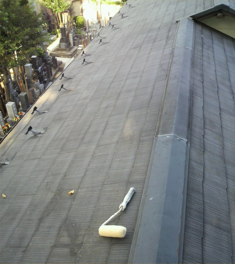お墓場隣の屋根の仕事