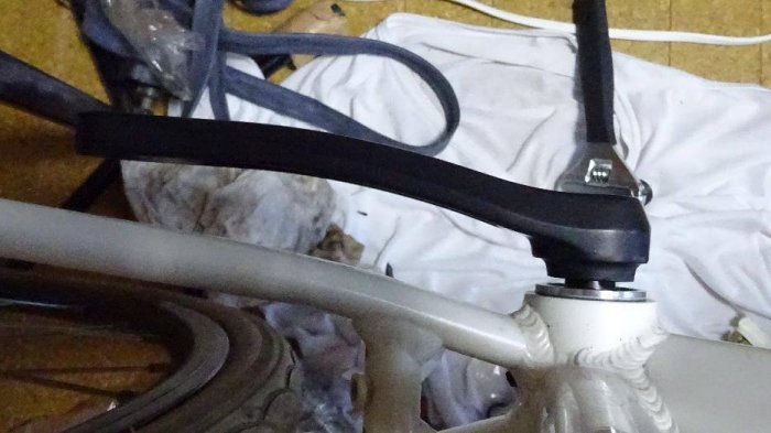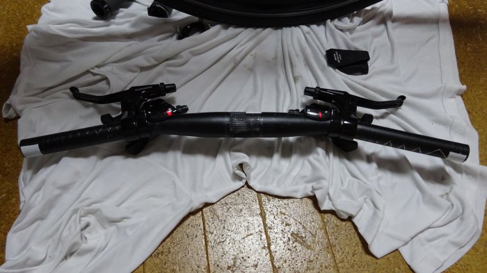 ハンドルとシフターとブレーキレバーは、前にフラットロードで使ったいた物を。