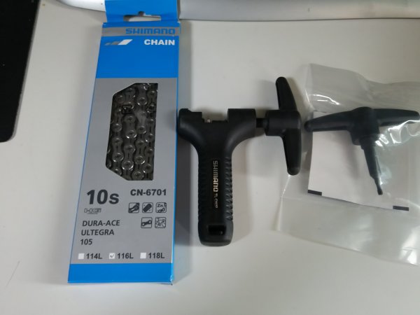 最近、ギアチェンジが何かおかしい。 で、よく考えてみると2年間使っていました、走行距離7000kmくらいか。 チェーン切りの矢も曲がってきたので、新しいのに。 結果、ギアチェンジはスムーズになりました。