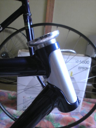 古いロードレーサーのフレームの組み立てで、自信がなかったのがヘッド圧入でした。 まずは上ワンからです。 専用工具は高いので、適当に作ってみました。 ネジを締めていけばこのまま真っ直ぐに入ってくれるだろうと 思ったら固くて固くてなかなか入らず斜めに入るわプラスチック のパイプは割れてくるわ で、大変でした。 最後はハンマーで叩きながら 何とか上下とも無事に入りました。