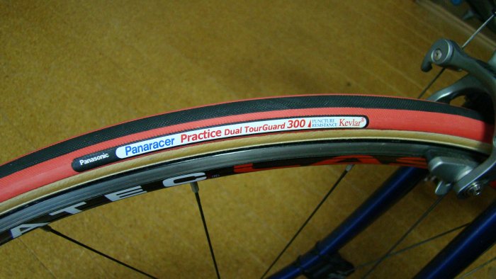 今までタイヤはずっとビットリアストラーダを使っていたのですが先日パンクしたのを機に 今度はパナレーサーのPractice Dual TGにしてみました。 ピンクに近い赤、このロードバイクに似合いません。(笑) 問題発生、バルブが短いので今使っている空気入れが使えません。