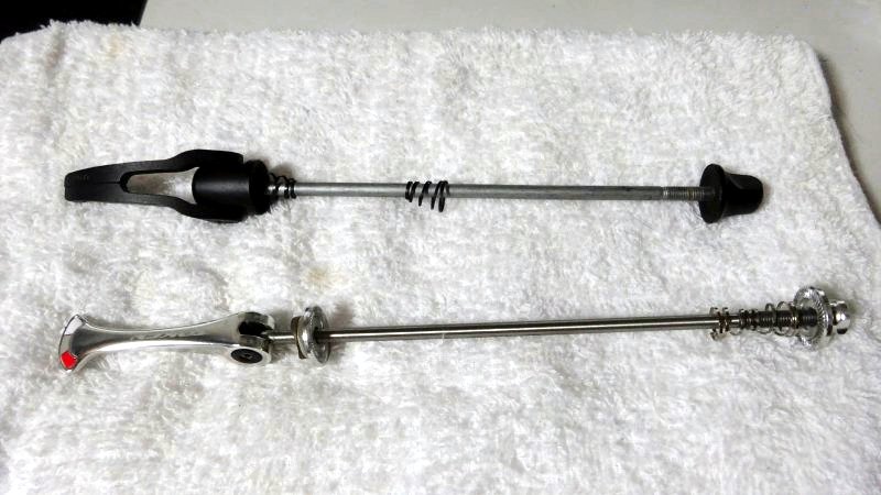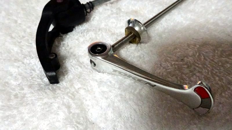 購入したトーケンのホイールですが、クイックがイマイチよくないので、 フルクラムレーゼロのクイックと交換です。 メッキで、デザインは良いんですが。 強く締めると左の根元の部分が削れます。 強く締めないと少しガタがでるので。 締めるときスムーズではないです。 徹底した軽量化のためなんでしょうけれど、リムも細いホイール。 頻繁にホイールを外すことがなければ問題ないことですが。