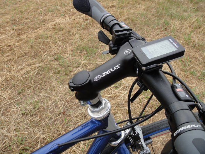 ヤフオクで、ステムとハンドルを1500円で落札しましたがステムの長さが少し足りないので 1p長いものに交換しました。しっくりとくるポジションになりました。 ステムは、ゼウスです。その昔カンパと同じくらい人気のあったメーカーです。