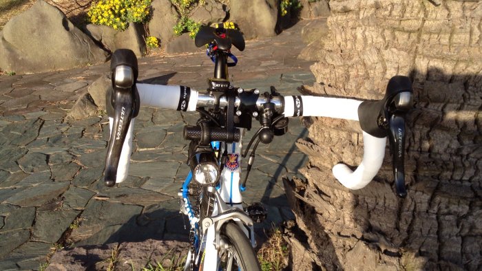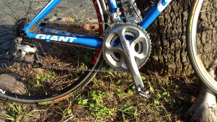 11月4日のサイクリングのときに、サイクリングロードで車止めに フロントフォークをぶつけてしまいました。 作ってから20年以上にもなるのでクロモリロードは引退させました。 で、GIANTを主力に乗ることにしました。