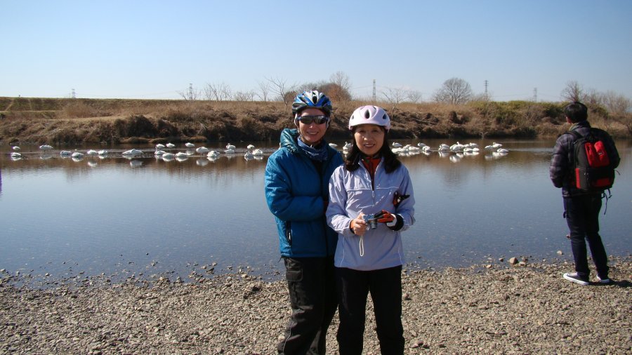 川島町に到着、白鳥が見えます。こんなところに白鳥が飛来するのかぁ。