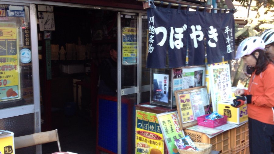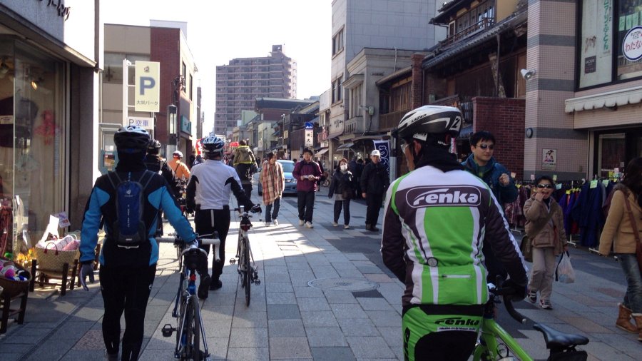 川越蔵造り通り、めちゃ混み。自転車は押して。