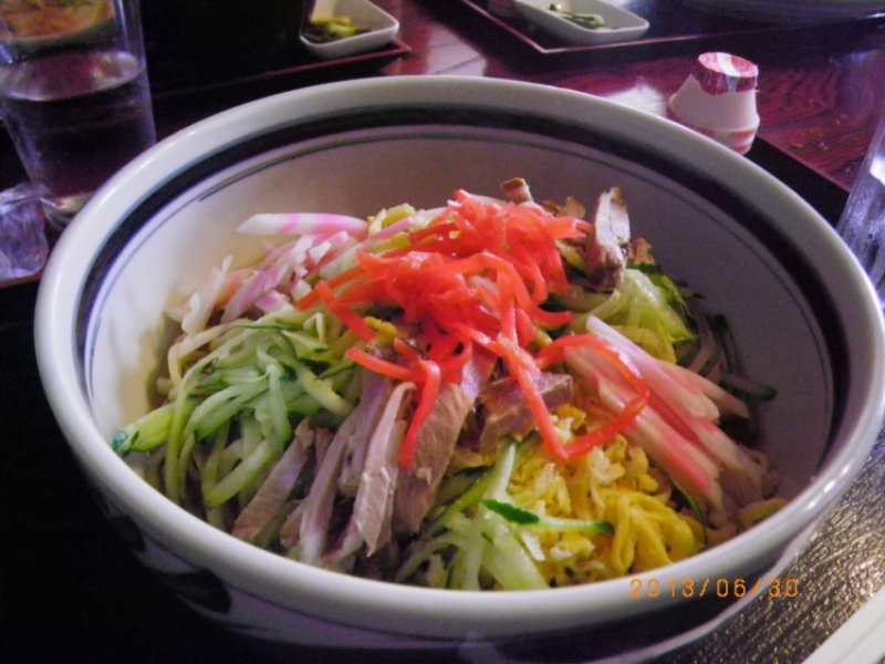 私が注文した冷やし中華。トイレが近くなることを考えると軽くしか食べられません。