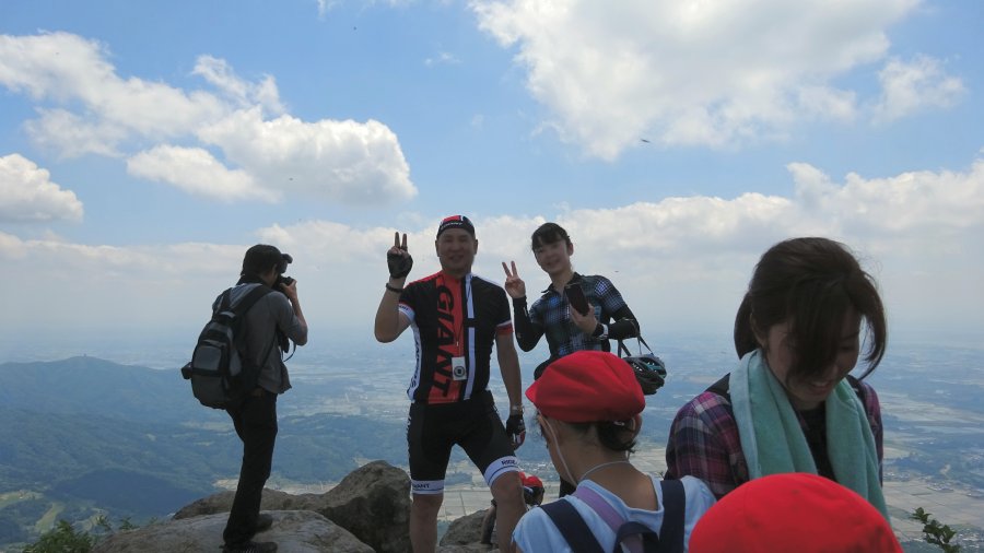 女体山頂上で。児童が沢山いて大変な混雑。