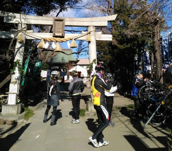 ロードバイク乗りはグループで来て祈願を受ける、そういう意味で有名な神社らしい。