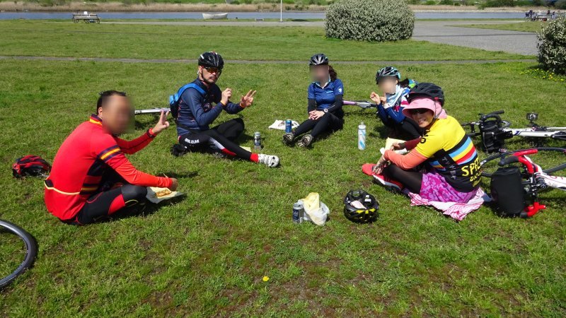 13:34 荒川河川敷の公園で、焼き鳥を食べながらお喋りタイム。