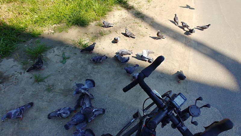 鳩が3羽来たので千切って与えると、数十羽が集まって来ました。