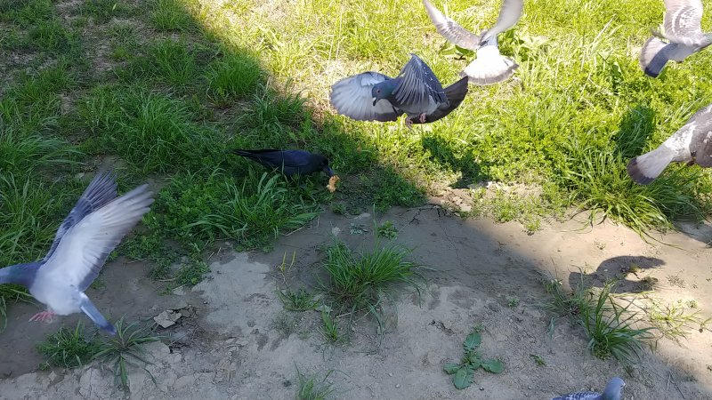 カラスが突然入ってきて大きいパンを。(笑)