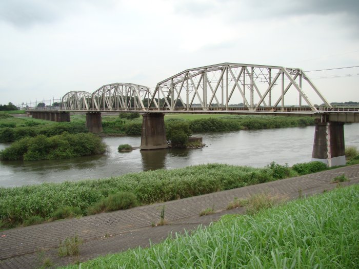 中川で。 スタートは、水元公園です。 江戸川です、先には松戸の伊勢丹が見えます。 緑にうっそうと覆われてきました。 ローカルな感じの鉄橋です。 芝生の植え込みの工事だと思うのですが。 関宿城が見えてきました。