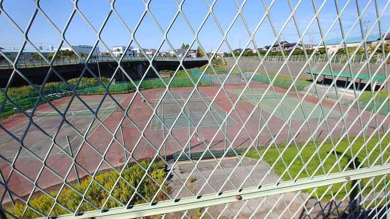 遊水池の中にあるテニスコート。