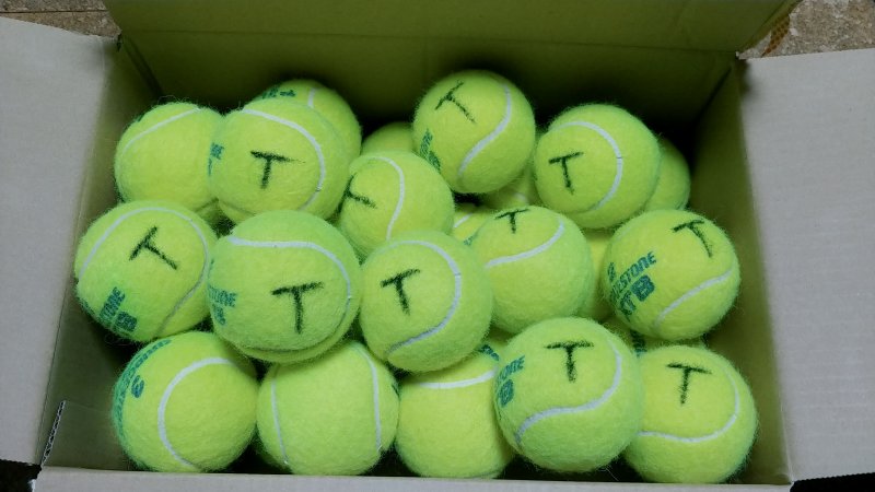 ヤフオクで、中古のボールを落札しました。 思ったより綺麗でいいんじゃない。 私が打ったボールはあちこち飛んで行くので。 追記:中古のボールは空気が抜けていて弾まないし 打っても飛ばないのでよくないですね。 30球で1500円でしたが送料は900円なので 決して安くはないですし。