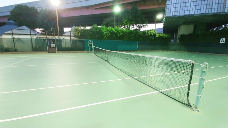 19時、テニスコートに。