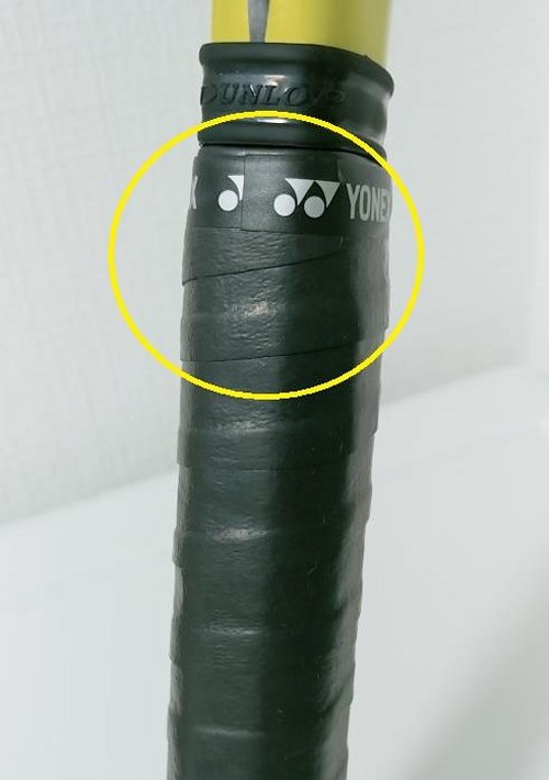 グリップテープが剥げてきたので張り替えを。 12日の試合で貰った景品があったのでこれを。 中学生の頃はドロップハンドルのバーテープを 張ってきたしロードバイクに復活してからはずっと 張り替えているのでラケットのテープを貼り替えるのは楽勝。 プロ並みだと思っています。 プロの仕上げは、黄色の〇の部分が違います。 しっかりと最後まで斜めに。
