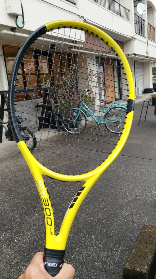 前のガットは他のラケットに張ろうとしていた黄色を張ったけど