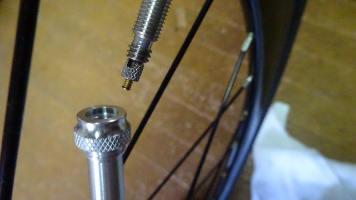 また今度のタイヤの空気圧は4.5barくらいなので手動のポンプで入りそう。