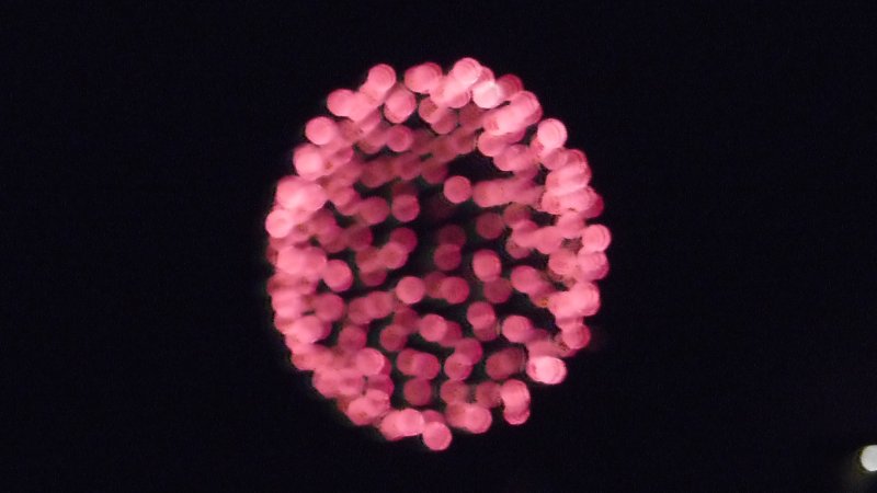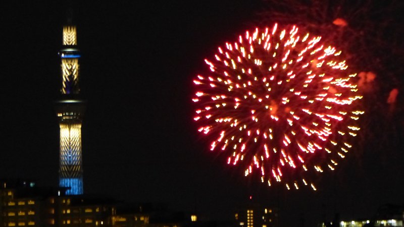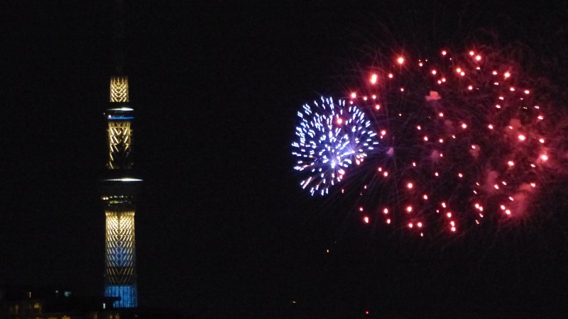 部屋からだと少し見えづらいので外階段から撮りました。 スカイツリーです。 花火というより、ウィルスみたいです。w 夜景に弱いカメラだとこんな感じになってしまうのかな。 カメラは、パナソニックのFZ200。 コンパクトデジカメと違って、綺麗に撮れますね。