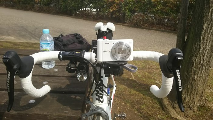 カメラもバーテープもタイヤも白。 WX350の充電は、カメラに直接コードを繋げるものなので、アマゾンで充電器を購入しました。