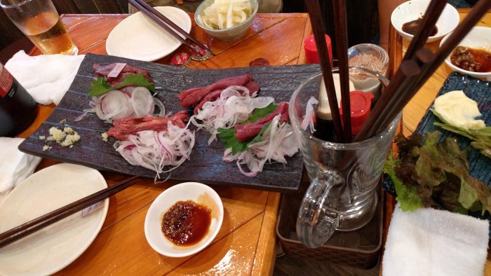 17:40 で、入ったお店は馬肉が美味しいお店でした。