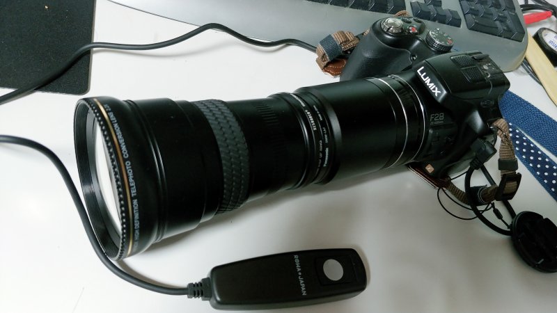 夜になって、やることがなくて何かないかと考えていたら 月が綺麗に見えるので撮ってみようと。 撮影機種は、パナソニックのFZ200 シャッターリモコンを取り付けて。 2.2×のテレコンを取り付けて最大で52.8倍に。 何も調整していないマニュアルで。 AIでオート撮影。 クレーターまでよく見えます。 ベランダで。