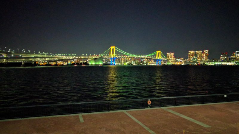 まずは、夜の豊洲ぐるり公園からレインボーブリッジを撮ってみたい。