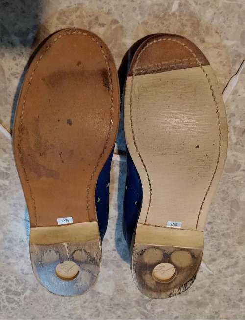 30年前に購入をしたボウリング用のシューズ。 新しいのを買うかまだ使うか迷いましたが、 何度か使ってみてまだ使えそうなのでこれからも使うことに。 手作り感がいいね。 裏だけ見ても高級感があります。 私は左利きなので、左の靴のつま先に滑り止めが付いています。 当時、幾らしたのかよく覚えていないのですが、 17000円くらいだったような25000円くらいしたような。 今なら、3000円くらいから4万円くらいまで。