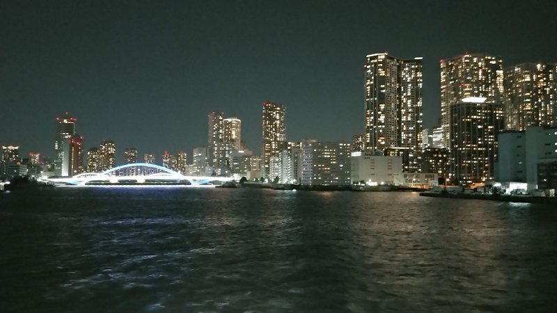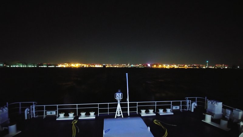 21:47 動く船から観る夜景、綺麗だ。