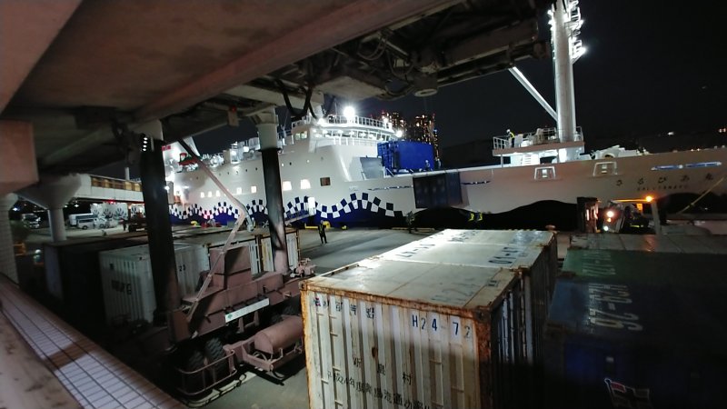 18:58 竹芝に到着して下船したところで。