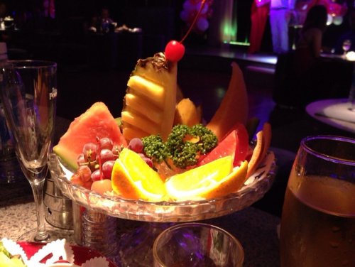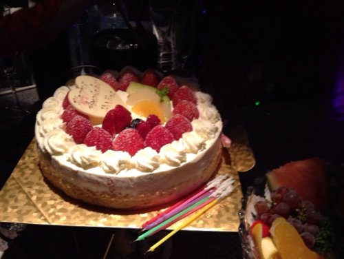 これが1本10万円のドンペリです。 このフルーツも高そうです。 近くのホテルで作ってもらったケーキで、6500円。