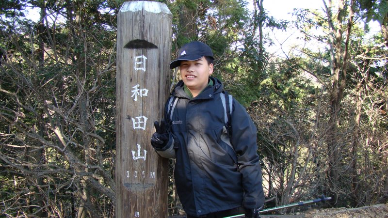日和田山頂上に到着です、息子は少々疲れ気味。