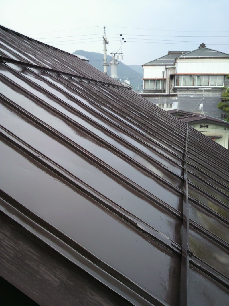 場所は、善光寺近くです。 お蕎麦屋さん「北野屋」さんの屋根の塗装です。 お昼はお店のメニューを何でも食べ放題でした。 夜は、社長さんとスタッフの方々と宴会になりました。 こんなお仕事だったら、いつでも請けたいものです。 雪国なので:傾斜の強い屋根、塗装は大変でした。