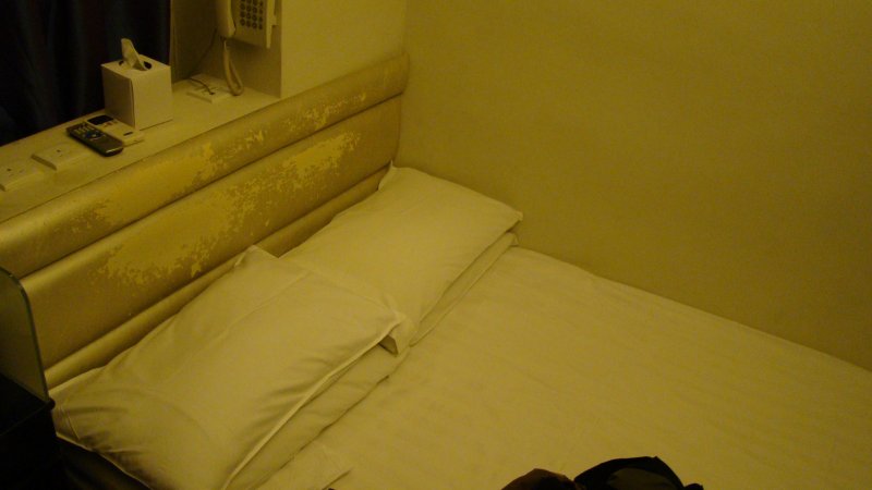 噂通り狭い部屋でした。枕は2つですが1人での旅行です。
