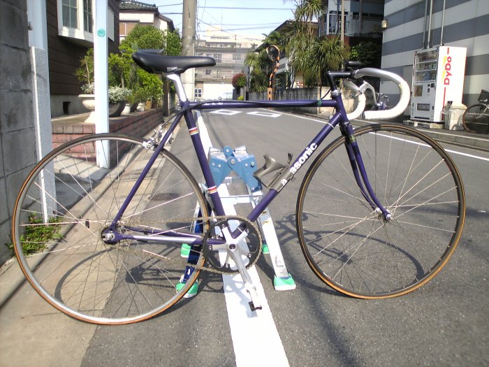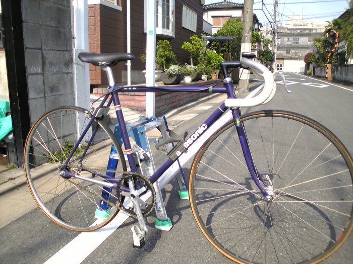 27歳のときだったか、ロードレーサーで参加をする立川競輪場のレースに出場をして、 また競輪場でのレースに参加をしたい今度はピストでという気持ちになり、 ピストを作りました。フレームはフルオーダーしました。 しかし、仕事が忙しくなりほとんど乗ることもなく20年近くも倉庫に眠っていました。