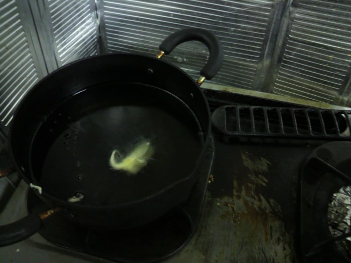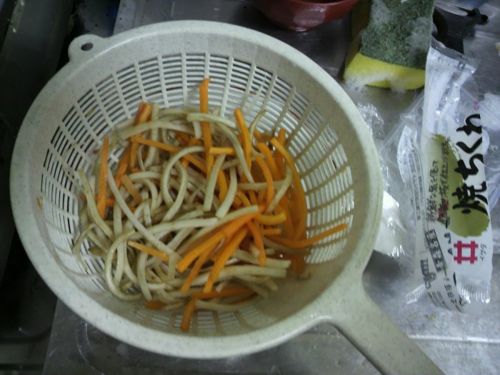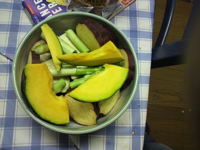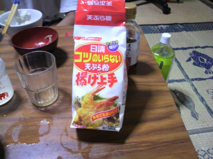 男子、厨房に立たず、が自分の信念ではありましたが・・・ まずは油の温度調整をして。 味噌汁も作らないとね。 本日の具材。 油の温度を見てみる。 できた、まぁそれなりに美味しい。 今回、この天ぷら粉を使ってみました。