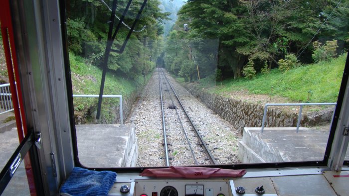 このような道が続きます。 へこたれるでない!(笑) 頂上まで700mのところまで来ました。 やっと頂上です、結局110分掛かりました。お疲れさん。 数日後、息子は「頂上に着いたときは感動した」と。 今度は、赤城山に行こうかな。 ここが男体山で、先が女体山です。女体山にも行きたかったのですが息子は拒否。(笑) 帰りは、ケーブルカーです。 動画です。