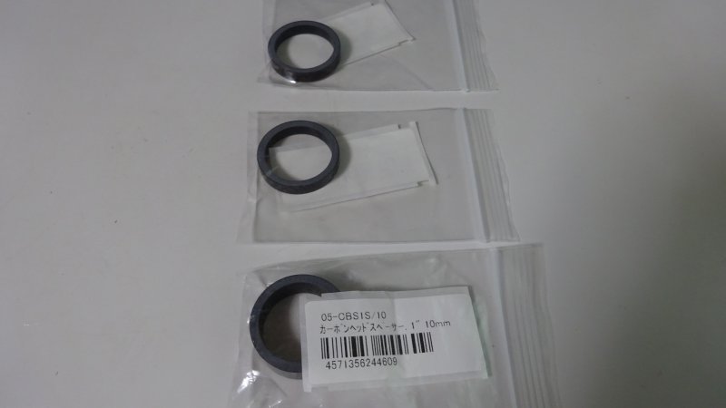最初、28.6mmのヘッドスペーサーを購入しましたが、径が合わずに1インチの物を。