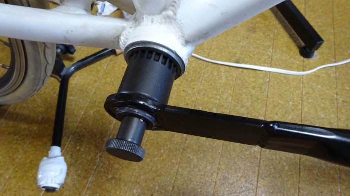完成したと思って部屋の中で跨がって動かしてみるとブレーキが利かない。