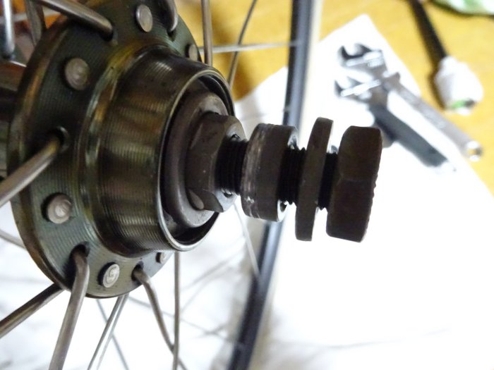 で、元もと付いていたホイールのシャフトをバラして135mmのホイールに足して145mmに。