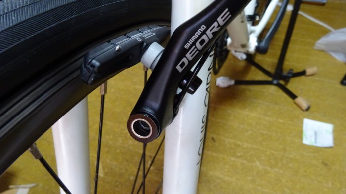 本来なら127mmなのですが、それだとQファクターが大き過ぎるので113mmに。