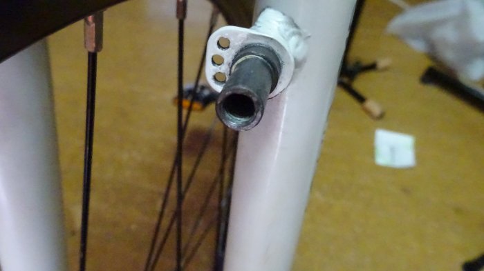 Vブレーキを扱うのは初めてで、最初この穴はなんだろうと思いました。