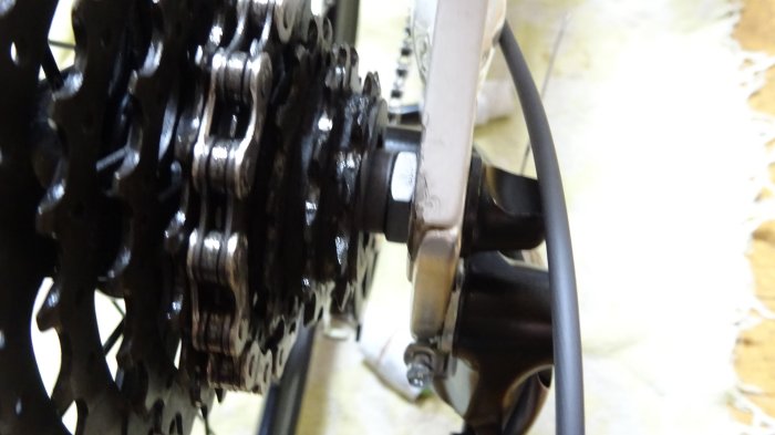 左側にワッシャーを入れて135mmから145mmにしたのでホイールのセンターは狂いました。