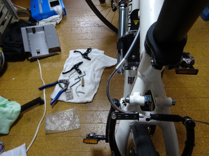 使えるだろうと思っていましたが、Vブレーキ専用のレバーを使わないとだめなんですね。